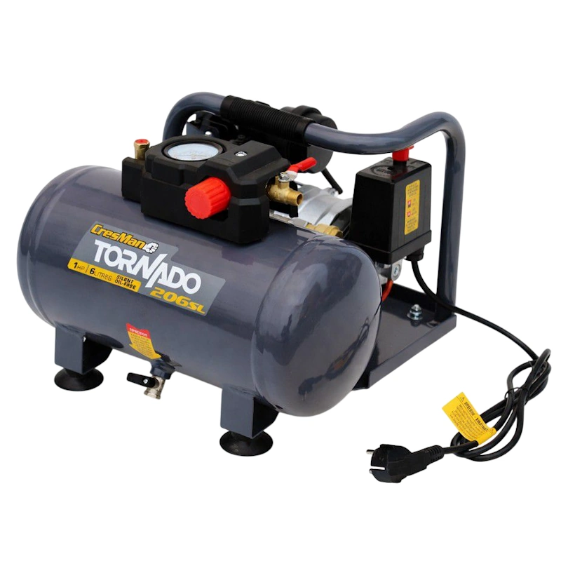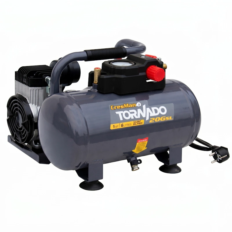 Αεροσυμπιεστής compact σχεδιασμού με χωρητικότητα 6 λίτρων, κατάλληλος για εργασίες που απαιτούν φορητότητα και σταθερή παροχή αέρα σε περιορισμένο χώρο. Διαθέτει ισχυρό κινητήρα 1 HP και αυτόματο διακόπτη πίεσης για αποτελεσματική λειτουργία, καλύπτοντας τις ανάγκες ερασιτεχνών και επαγγελματιών για χρήση εργαλείων αέρος μικρής κλίμακας.