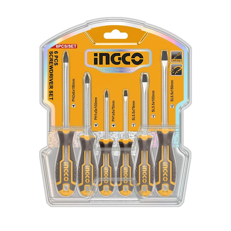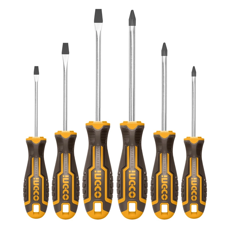 Σετ 6 κατσαβίδια της εταιρείας Ingco. Διαθέτουν μαγνητική μύτη ώστε να κρατάνε τις βίδες πριν την τοποθέτησή τους.