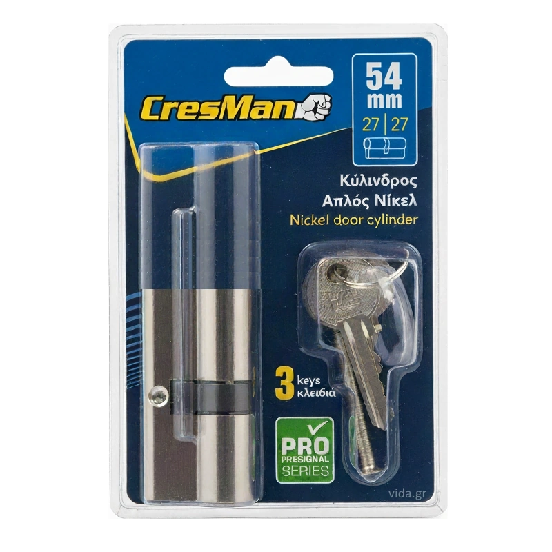 Κύλινδρος με 3 Κλειδιά 54mm (27-27) Νίκελ Cresman