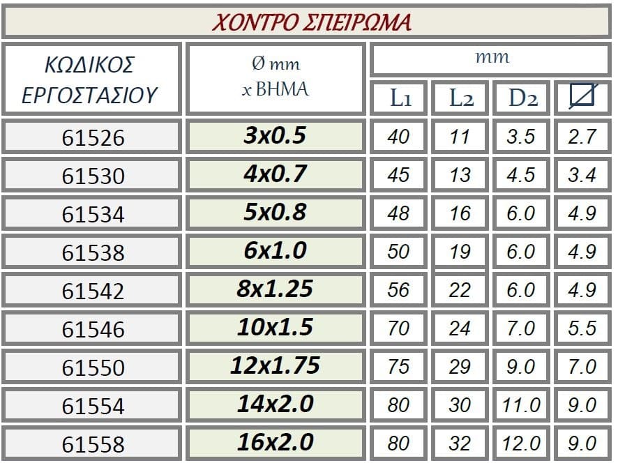 Μονά Κολαούζα Κοντά Μετρικά HSS-E με Χοντρό Σπείρωμα Volkel Γερμανίας